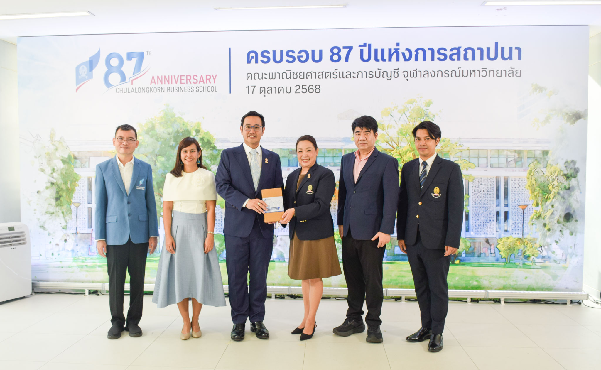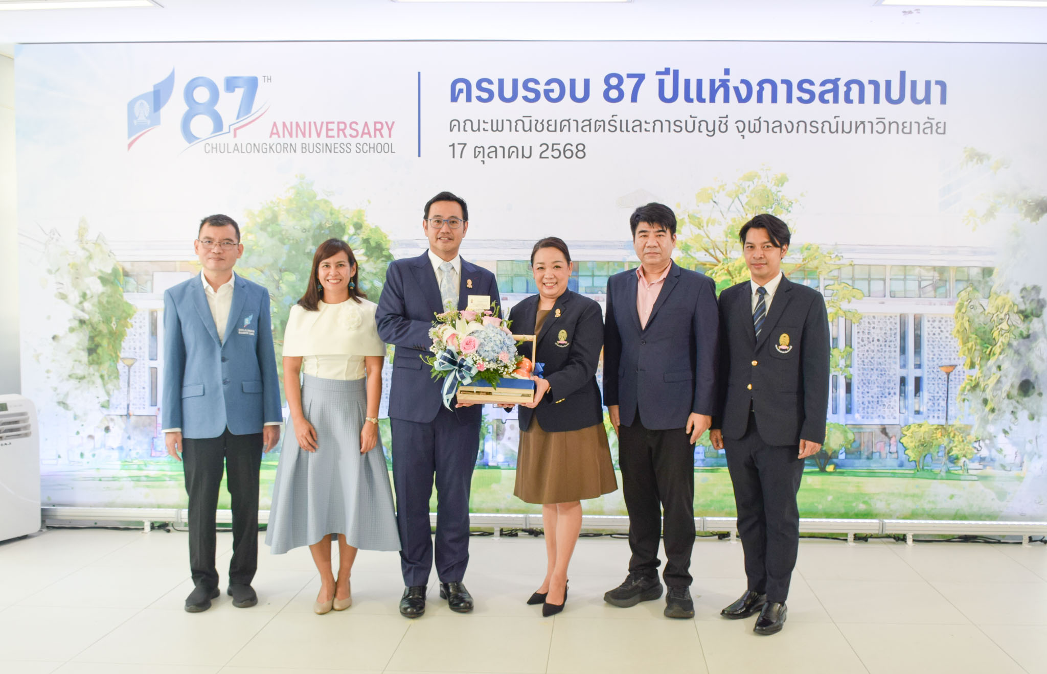 วันที่ 17 ตุลาคม 2568 ผู้ช่วยศาสตราจารย์ ดร.ณัฐสุดา เต้พันธ์ คณบดีคณะจิตวิทยา พร้อมด้วยคุณวีระยุทธ กุลสุวิพลชัย ผู้อำนวยการฝ่ายบริหารคณะจิตวิทยา ร่วมแสดงความยินดีและมอบของที่ระลึก เนื่องในโอกาสครบรอบ 87 ปี แห่งการสถาปนาคณะพาณิชยศาสตร์และการบัญชี จุฬาลงกรณ์มหาวิทยาลัย โดยมี รองศาสตราจารย์ ดร.ธารทัศน์ โมกขมรรคกุล คณบดีคณะพาณิชยศาสตร์และการบัญชี เป็นผู้รับมอบ ณ ชั้น 3 อาคารไชยยศสมบัติ 1 คณะพาณิชยศาสตร์และการบัญชี จุฬาฯ
