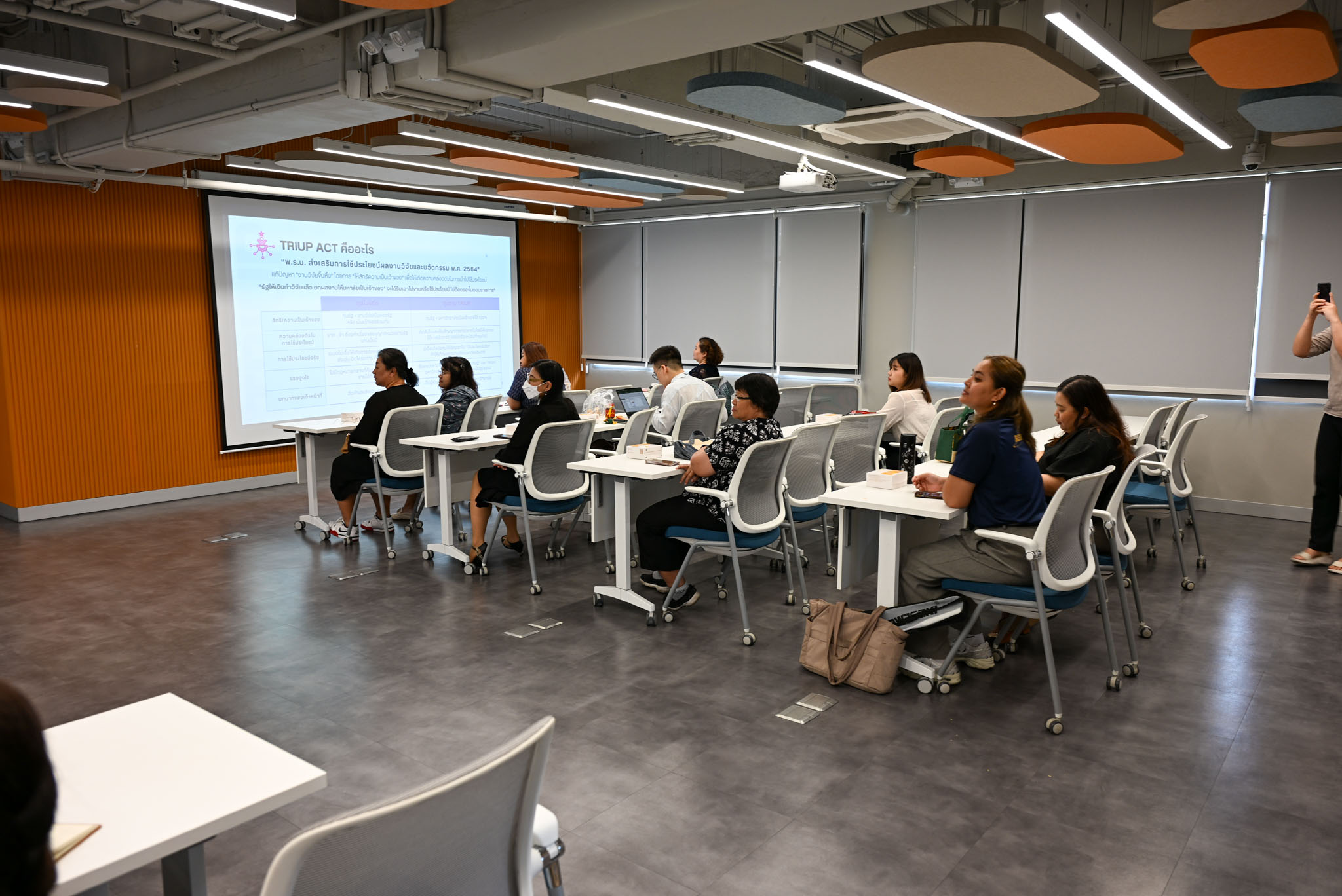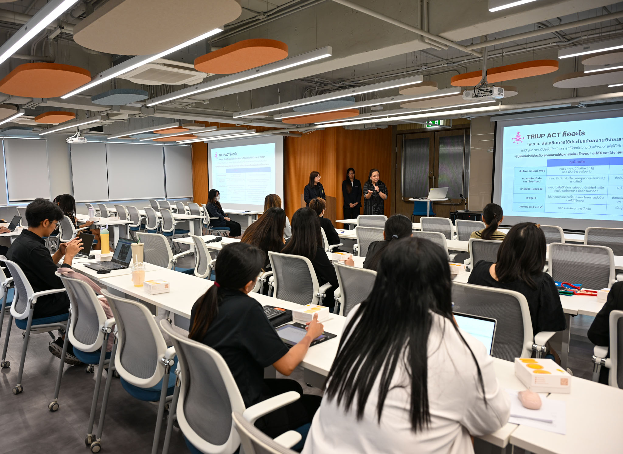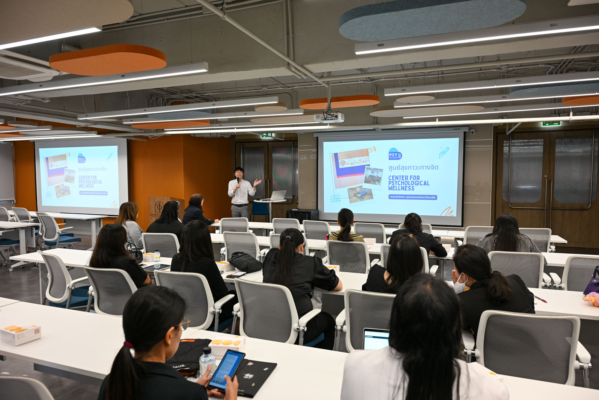 สำหรับการประชุมชี้แจงการดำเนินงานของคณะกรรมการเครือข่ายฯ ในครั้งนี้ ได้มีการบรรยายและพูดคุยเกี่ยวกับกระบวนการบริหารจัดการทุนตาม พระราชบัญญัติส่งเสริมการใช้ประโยชน์ผลงานวิจัยและนวัตกรรม (TRIUP ACT) โดยวิทยากรจากศูนย์กลางนวัตกรรมแห่งจุฬาฯ (CU Innovation Hub) และได้มีการบรรยายเกี่ยวกับศูนย์บริการทางวิชาการของคณะจิตวิทยาในการช่วยดูแลใจชาวจุฬาฯ ได้แก่ การแนะนำบริการการดูแลสุขภาพจิตและช่องทางการติดต่อขอรับบริการจากนักจิตวิทยาประจำศูนย์จิตวิทยาพัฒนาการและความสัมพันธ์ระหว่างวัย และศูนย์สุขภาะวาทางจิต