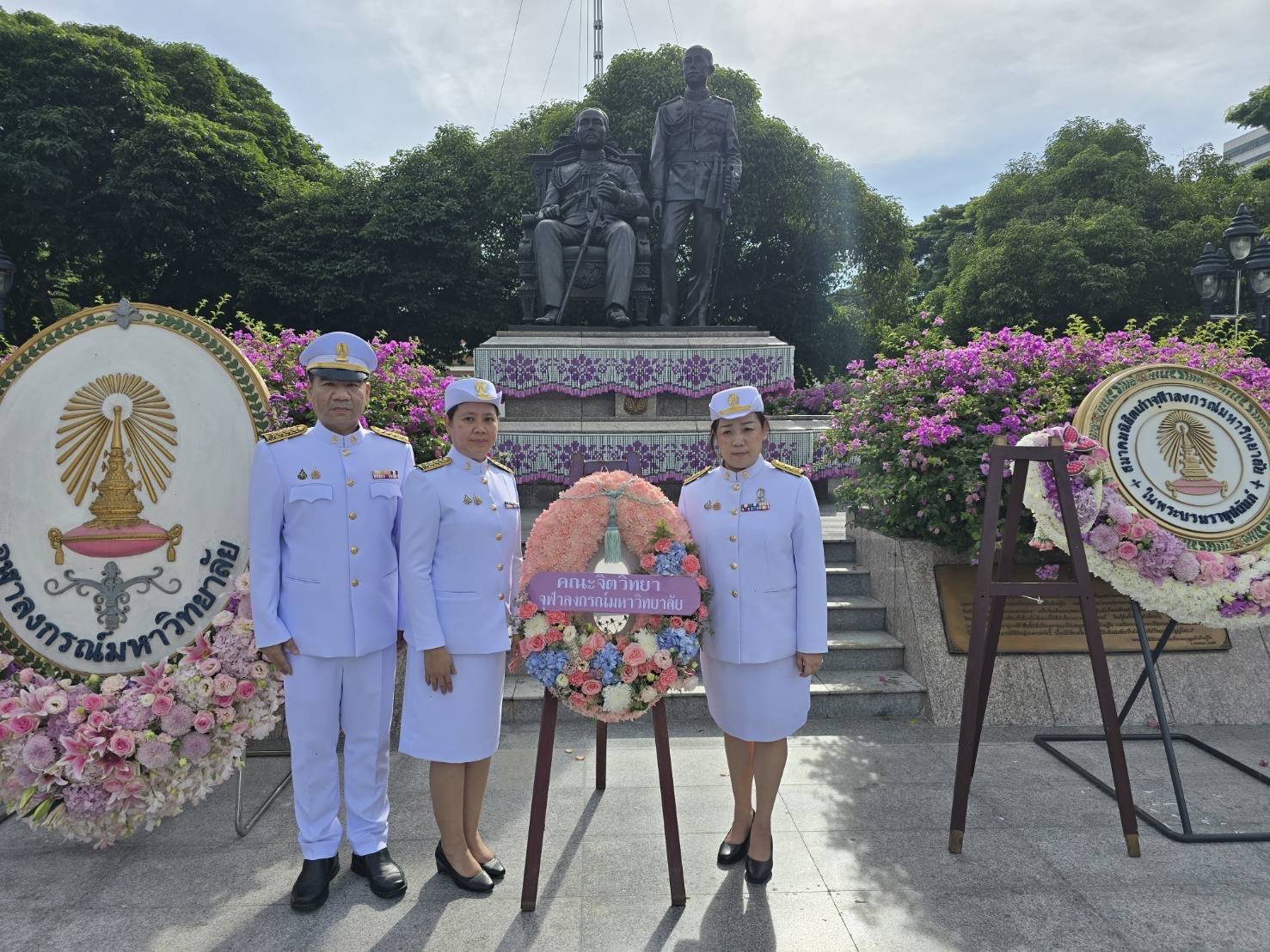 ในการนี้ ผู้ช่วยศาสตราจารย์ ดร. ณัฐสุดา เต้พันธ์ คณบดีคณะจิตวิทยา พร้อมด้วยคุณวีระยุทธ กุลสุวิพลชัย ผู้อำนวยการฝ่ายบริหาร และคุณเวนิกา บวรสิน ผู้อำนวยการฝ่ายวิชาการ เข้าร่วมพิธีวางพวงมาลาและถวายบังคมด้วย