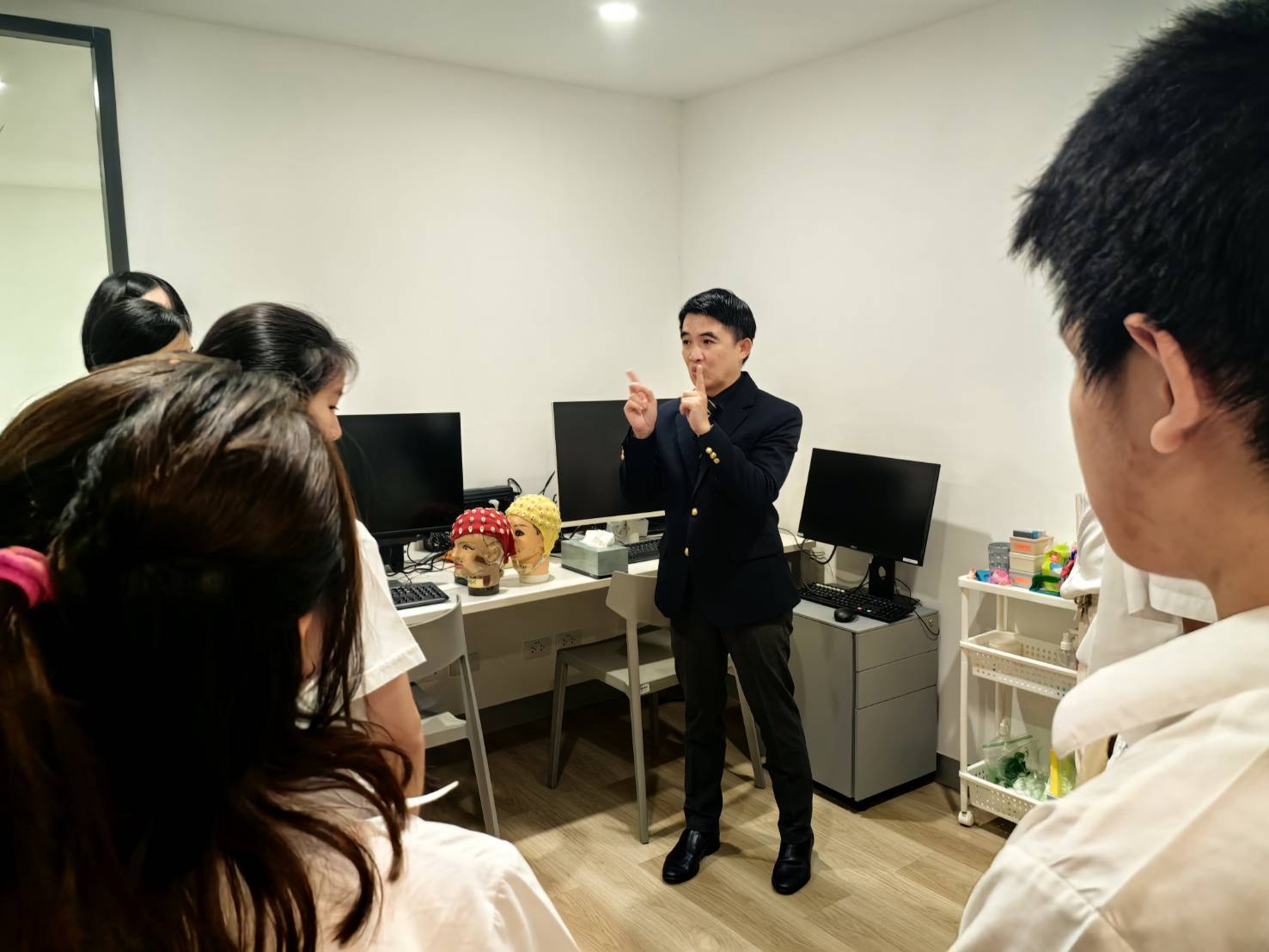 วันที่ 17 กุมภาพันธ์ 2569 คณะจิตวิทยาต้อนรับคณะนักเรียนชั้นมัธยมศึกษาปีที่ 4-5 และคุณครู จำนวน 20 ท่าน จากโรงเรียนรุ่งอรุณ ที่เข้ามาศึกษาเรียนรู้ที่คณะจิตวิทยา รับฟังการบรรยายเรื่อง “ความเครียด สุขภาพจิตและสมอง” และชมการสาธิตการตรวจวัดคลื่นไฟฟ้าสมองด้วยเครื่อง portable EEG โดยวิทยากร ผศ. ดร.พีร วงศ์อุปราช จากนั้นเยี่ยมชมห้องปฏิบัติการ EEG ของคณะจิตวิทยา