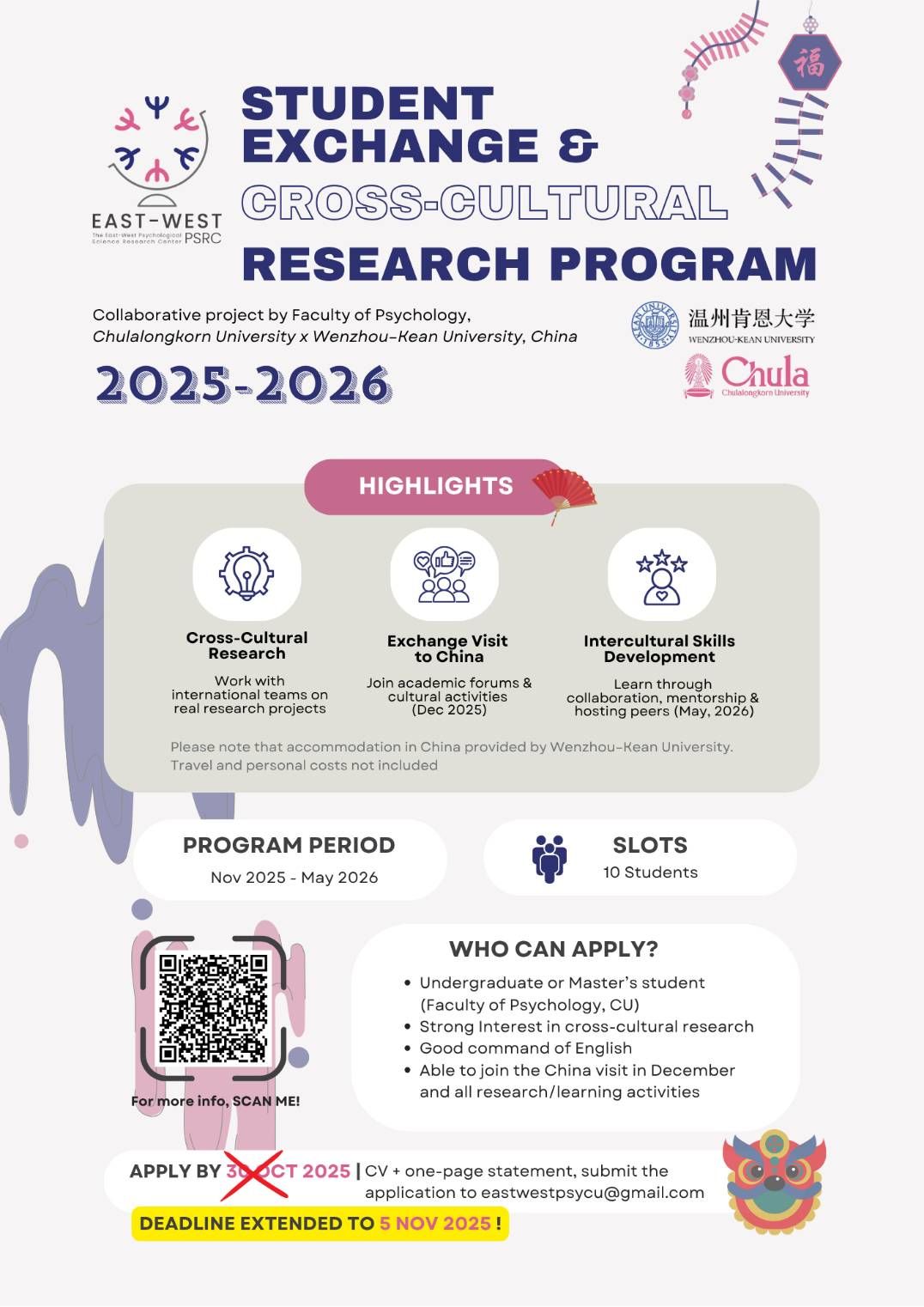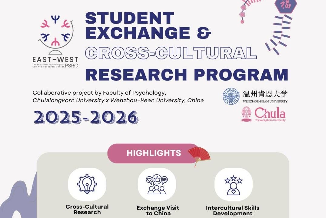 We’re excited to announce the launch of the Intercultural Development: Student Exchange & Cross-Cultural Research Program 2025–2026, a collaboration between the Faculty of Psychology, Chulalongkorn University, and Wenzhou–Kean University, China.
