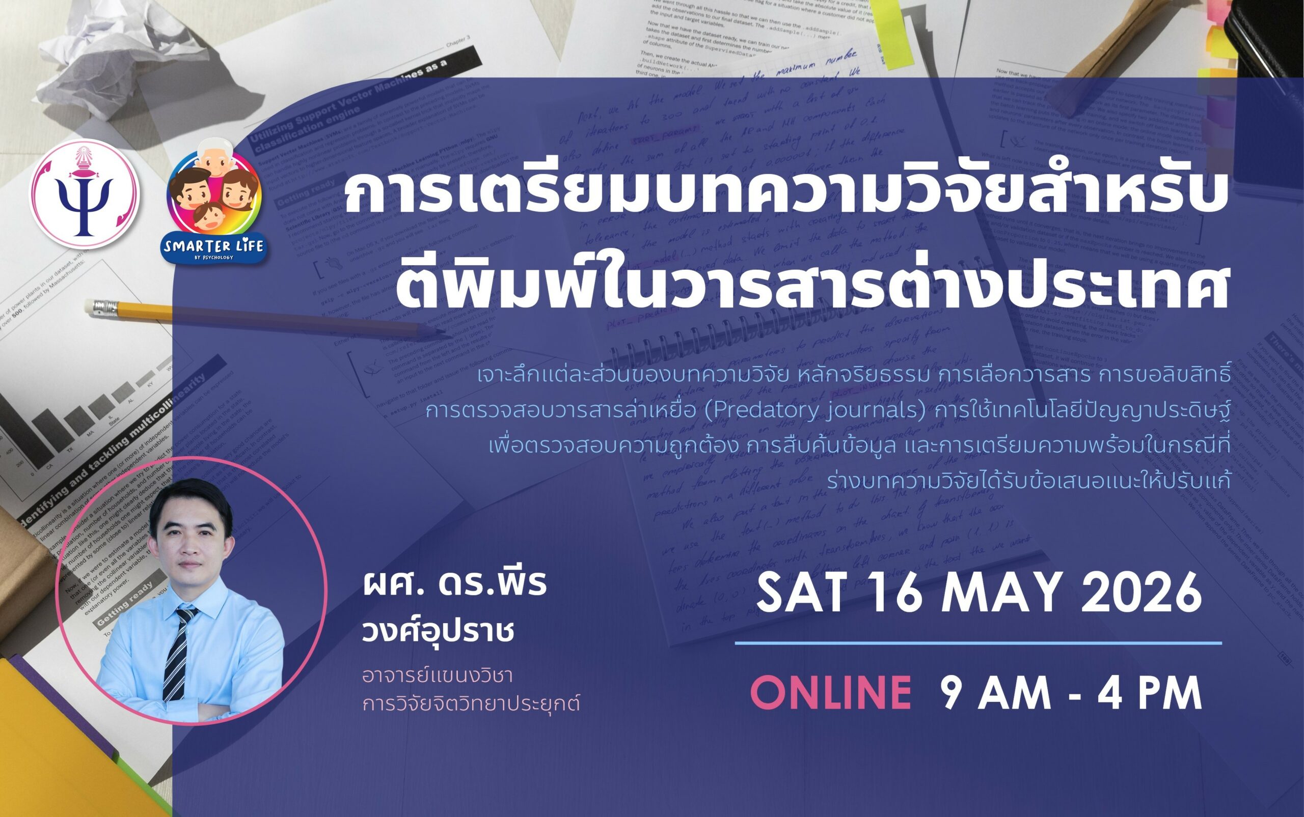 โครงการอบรมความรู้ทางจิตวิทยา หัวข้อ “การเตรียมบทความวิจัยสำหรับตีพิมพ์ในวารสารต่างประเทศ”