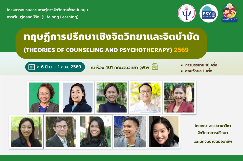โครงการอบรมความทางรู้ทางจิตวิทยาเพื่อสนับสนุนการเรียนรู้ตลอดชีวิต (Lifelong Learning) หัวข้อ “ทฤษฎีการปรึกษาเชิงจิตวิทยาและจิตบำบัด (THEORIES OF COUNSELING AND PSYCHOTHERAPY)” ปี 2569