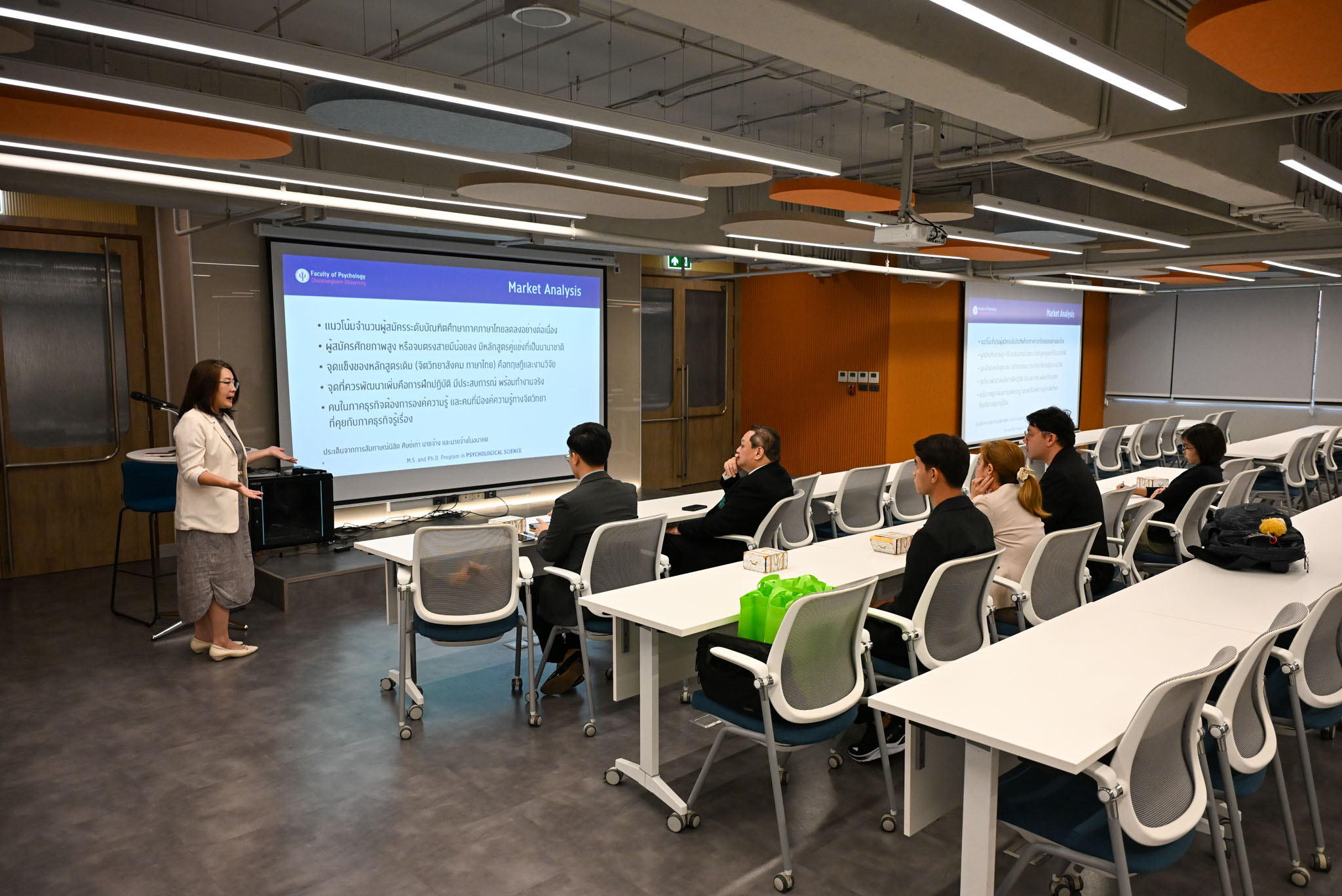 วันที่ 29 มกราคม 2569 คณะจิตวิทยา จุฬาลงกรณ์มหาวิทยาลัย ให้การต้อนรับคณะสหเวชศาสตร์ มหาวิทยาลัยศิลปากร ในโอกาสเข้าศึกษาดูงานและแลกเปลี่ยนองค์ความรู้ด้านการจัดการเรียนการสอน งานวิจัย และการพัฒนาห้องปฏิบัติการจิตวิทยา แขนงวิชาจิตวิทยาธุรกิจ คุณจิตวิทยา จุฬาฯ โดย ผศ. ดร.ทิพย์นภา หวนสุริยา ผู้อำนวยการหลักสูตรวิทยาศาสตรมหาบัณฑิตและดุษฎีบัณฑิตสาขาวิชาวิทยาศาสตร์จิตวิทยา และประธานแขนงวิชาจิตวิทยาธุรกิจ เป็นตัวแทนให้การต้อนรับและการบรรยาย