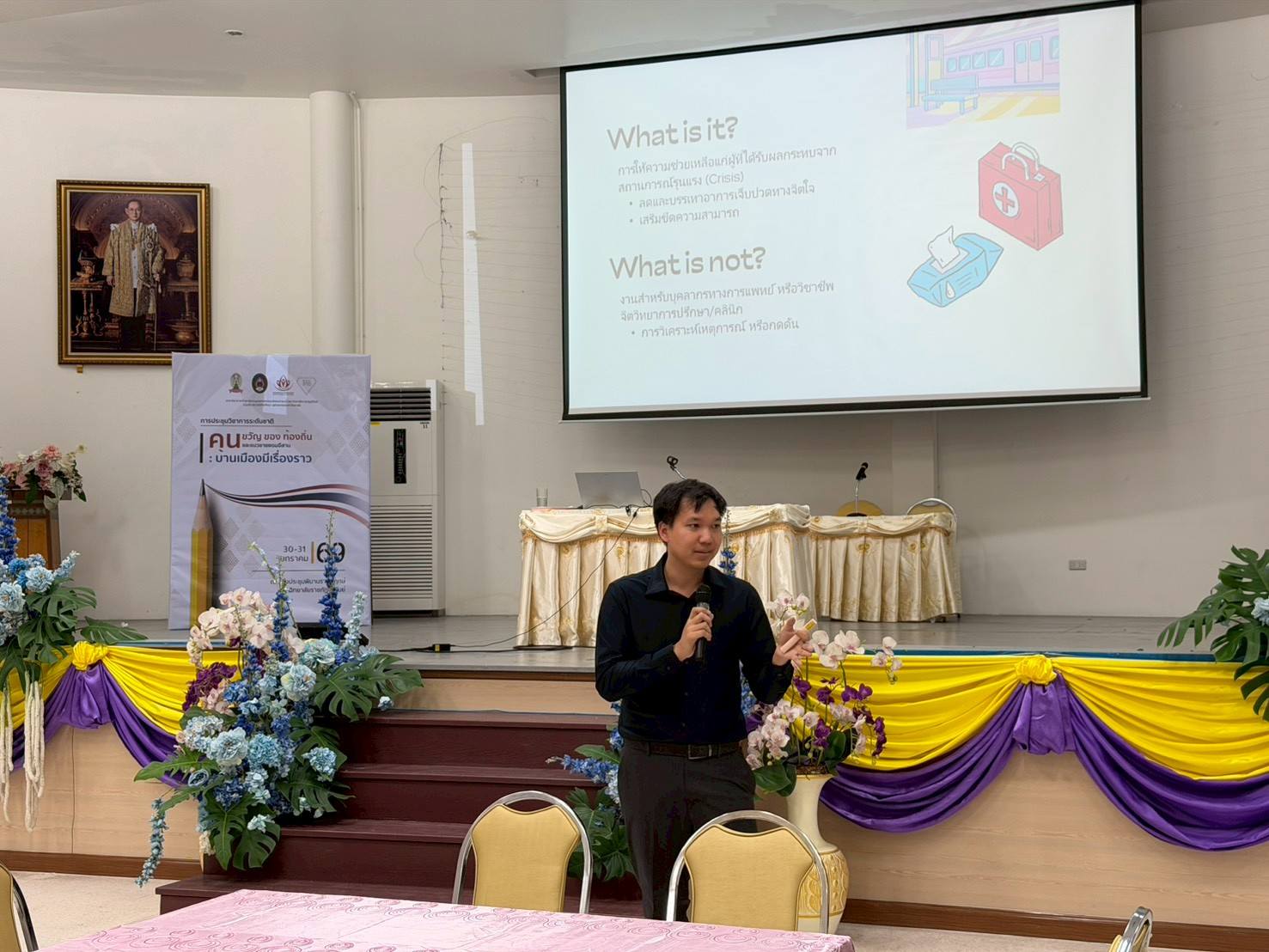ในการนี้ ศูนย์สุขภาวะทางจิต คณะจิตวิทยา มีโอกาสได้ร่วมจัดกิจกรรม “ขวัญเอยขวัญมา การปฐมพยาบาลทางใจ” ให้แก่นิสิต นักศึกษา และผู้เข้าร่วมประชุมวิชาการที่สนใจ