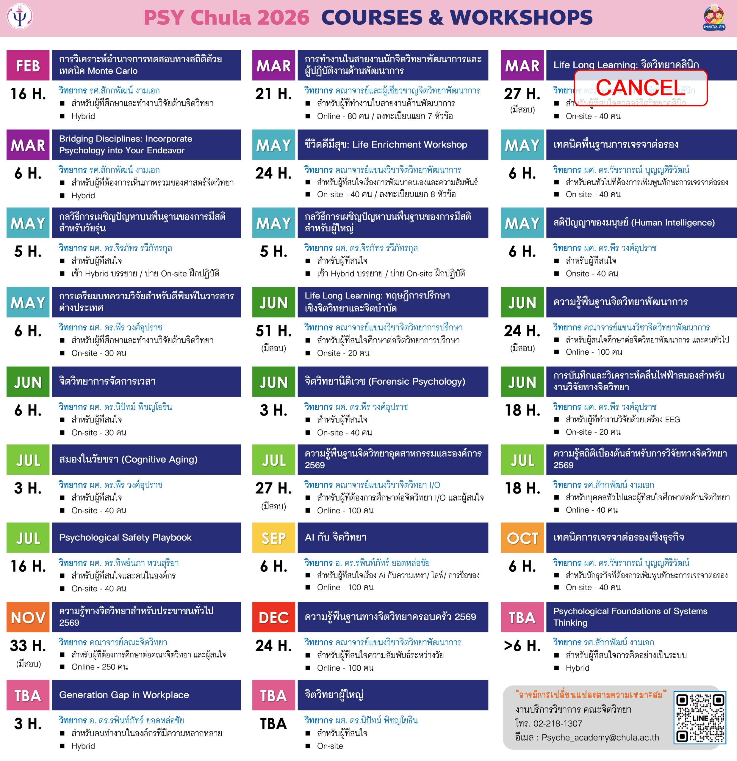 สอบถามข้อมูลเพิ่มเติมได้ที่ คุณวาทินี สนลอย งานบริการวิชาการ คณะจิตวิทยา จุฬาลงกรณ์มหาวิทยาลัย