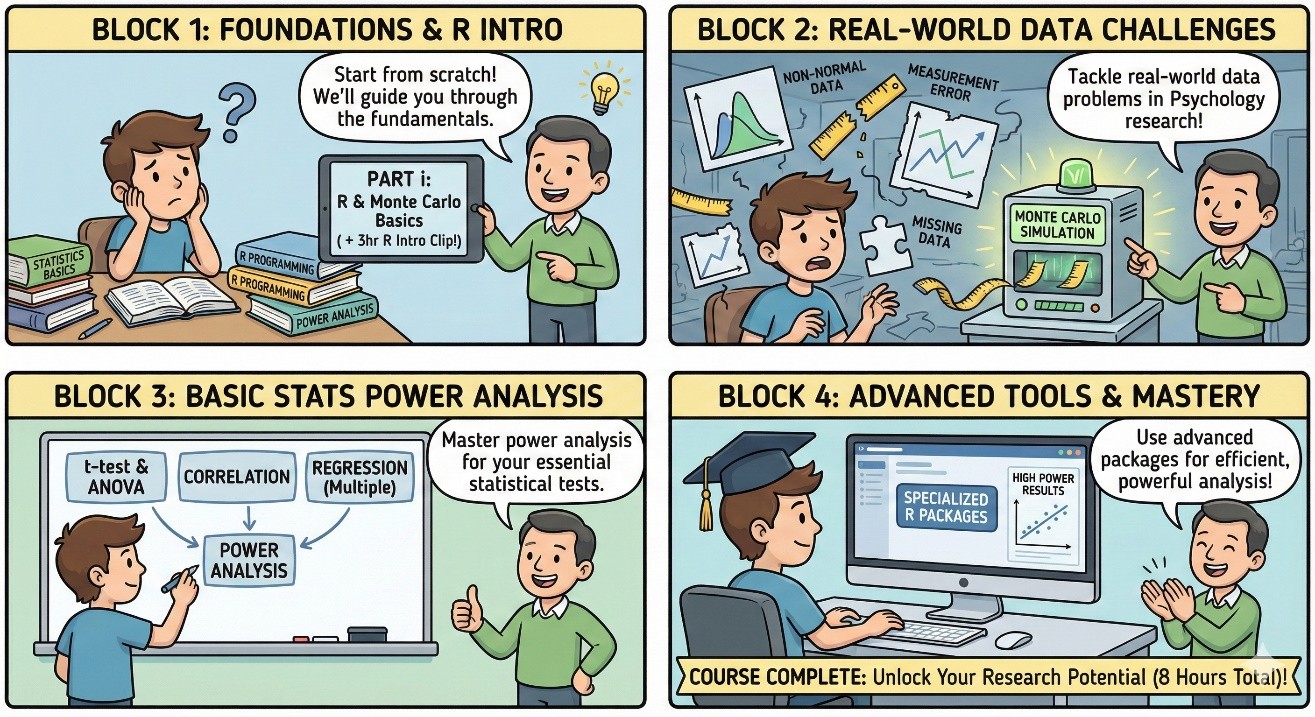 ด้วยเหตุนี้ โครงการนี้จะนำเสนอการวิเคราะห์อำนาจการทดสอบทางสถิติเชิงการจำลองข้อมูล (simulation-based power) ด้วยเทคนิค Monte Carlo ซึ่งนักวิจัยจะสามารถวิเคราะห์อำนาจการทดสอบทางสถิติที่สะท้อนงานวิจัยจริงได้มากขึ้น เช่น สามารถกำหนดให้การกระจายของข้อมูลเบี่ยงเบนไปจากการกระจายแบบโค้งปกติได้ สามารถกำหนดความเที่ยงของการวัด (ที่มักจะน้อยกว่า 1.0) ได้ และสามารถกำหนดให้มีข้อมูลสูญหายได้