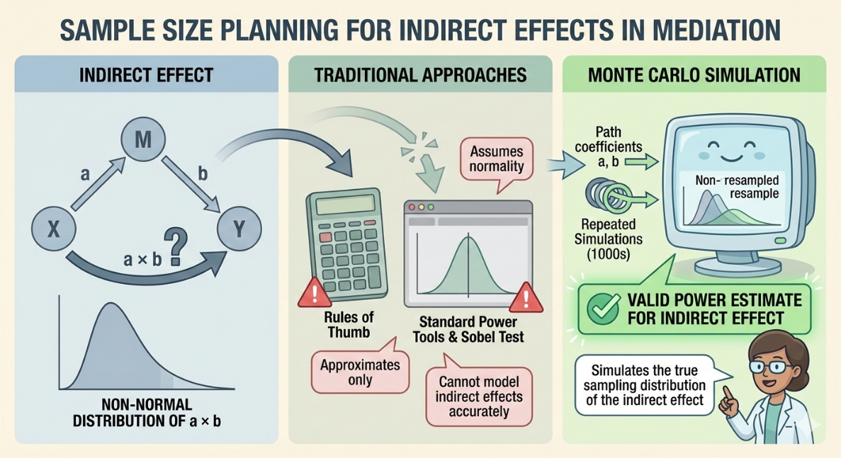 ความแตกต่างระหว่างการจำลองข้อมูลด้วยเทคนิค Monte Carlo และการวิเคราะห์อำนาจการทดสอบทางสถิติเชิงทฤษฎี (เช่น G*Power) สำหรับการวิเคราะห์อิทธิพลส่งผ่าน