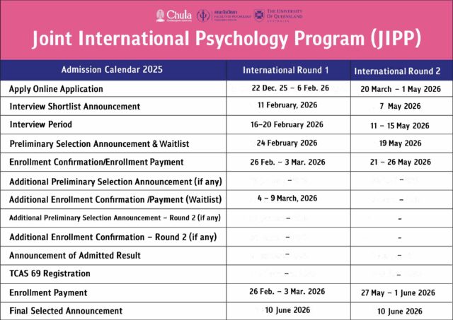 การรับสมัคร ∙ ปริญญาบัณฑิต สาขาวิชาวิทยาศาสตร์จิตวิทยา ∙ หลักสูตรนานาชาติสองปริญญา (JIPP)