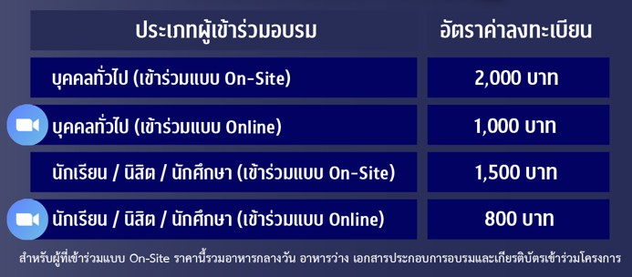 โดยผู้เข้าร่วมแบบ on-site จะได้รับเกียรติบัตรแบบ Hard copy และผู้เข้าร่วมแบบ online จะได้รับเกียรติบัตรแบบ e-certificate ทางอีเมล